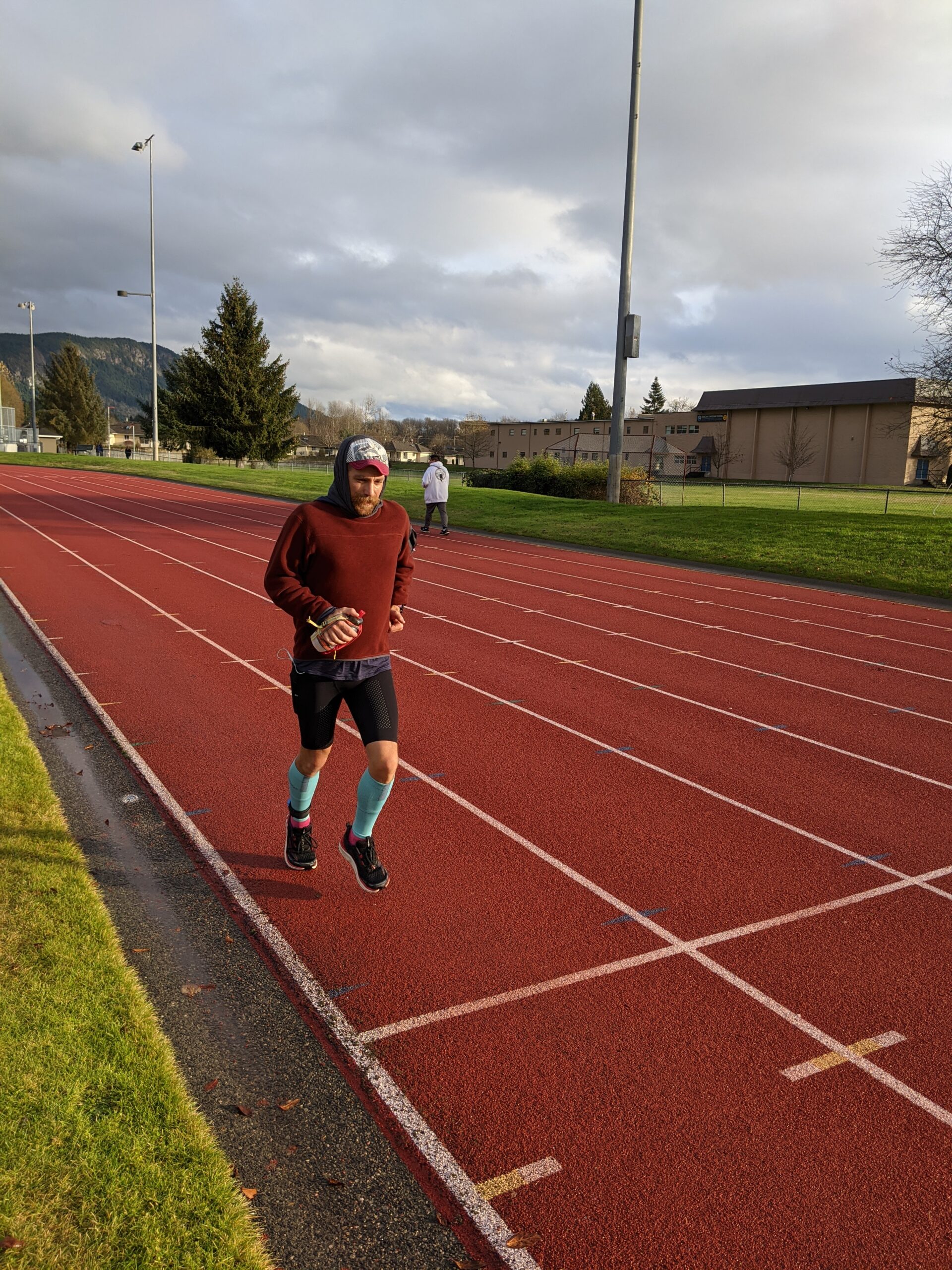 Well, that was hard! I entered the One Track Mind 24hr track race thinking running 100 miles would be no problem. Boy was I wrong! I thought that the biggest challenge would be mental and running on a flat track wouldn’t be physically as challenging as say a mountain trail ultramarathon. So wrong. After about 50 miles of running in circles, I could run no more. I managed to walk another 18ish miles, but I literally could not pick up my legs to run. My quads were entirely shot! But I thought quads get beat up when running downhill? WTF! In the end I ran for 15hrs and about 68 miles (68.68 according to my watch). When I dropped out I was going slower and slower and I just couldn’t see myself walking for another nine hours! I did fully feel disappointment. I wanted more out of the run and my body/mind but it wasn’t to be.
